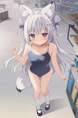 このケモミミさんで、スク水とショッピングモールをプロンプトに入れてみました。