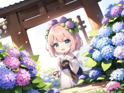 blue sky, perfect detailed (many colorful hydrangea:1.2) background,