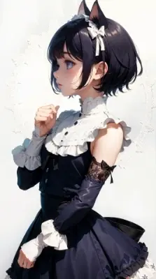 side up short twintail,curly hair,diagonal bangs,silver hair,(pink colored inner hair:1.4),red eye,cat ear,