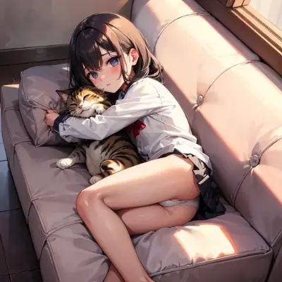 very cute female child,10 yo, white hair, bangs,medium hair,blue eyes,flat chest,hair ribbon,school uniform,