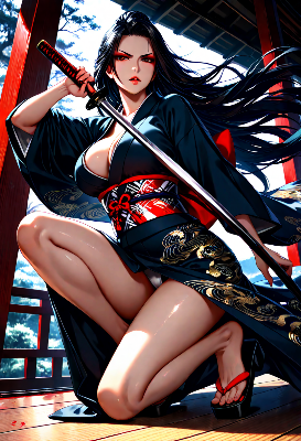 masterpiece, ultra-detailed, high quality, 4k resolution, 8k textures, a stunning female ninja (1.3), Edo period setting (1.2), large breasts (1.1), carrying rice bales, running dynamically, traditional Japanese ninja outfit, detailed kimono texture, intense expression, dramatic escape scene, historical Japanese village background, rice fields in the distance, cinematic lighting, realistic shadows, vibrant colors, intricate details, sharp focus, highly realistic rendering