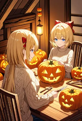 2girls,loli,cute anime style,blond hair,short hair,bob hair,(hair bow:1.4),(red bow:1.4),blue eyes,sparkling eyes,happy expression,black hair,long hair,straight hair,brown eyes,gentle smile,both wearing casual clothes,colorful aprons,kitchen background,wooden cabinets,marble countertop,glass bottles,fruit juice containers,mixing bowls,colorful straws,ice cubes,fresh fruits on counter,warm lighting,cozy atmosphere,standing pose,one girl reaching for ingredients,other girl stirring mixture,detailed hands holding utensils,bare feet on kitchen floor,cheerful cooking scene,(best quality:1.3),(very aesthetic:1.2),(absurdres:1.2),