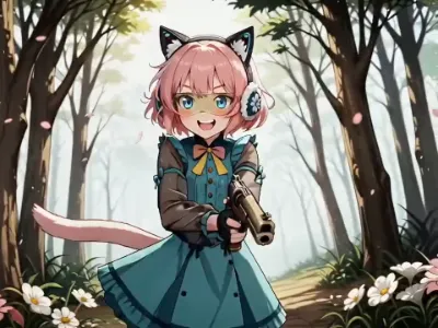 Fluttering petals, (platinum white hair,purple inner hair:1.2),blush,Ahoge,lion girl,white lion ears,white lion tail,solo,1 girl,masterpiece, best quality, extremely detailed, anime,little pretty girl, platinum white blonde hair,Long Hair,Purple Eyes ,small breasts, (fang),looking at viewer ,