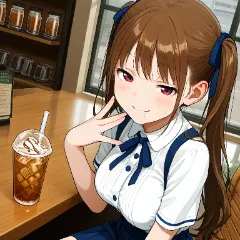 A pair of sisters relaxing at Starbucks, drinking iced lattes together, casual atmosphere, warm lighting.