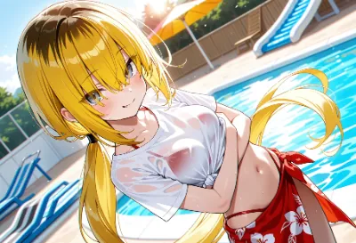 sunlight, backlighting, outdoors, poolside, water slide, beach umbrella, beach chair,