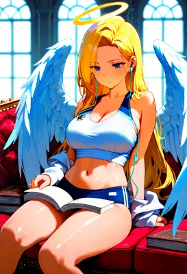 masterpiece, best quality, masterpiece, masterpiece, best quality, ultra detailed, woman, red short hair, spirited, angel halo, white big wings, standing, quiet medieval European village at night, holding a glowing Halloween lantern shaped like a pumpkin, smiling brightly with joy, wearing a cozy autumn outfit with a cape, warm candlelight illuminating her face, cobblestone street and timber-framed houses in the background, starry night sky above, festive yet peaceful atmosphere, highly detailed, magical lighting