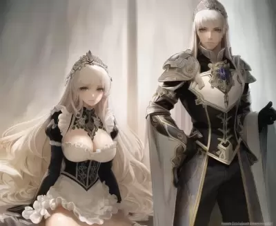 最近、異国で発明された写真機(カメラ)の前で、 決めポーズをする王子様とお姫様。 ※ 露光に時間がかかるため数十分は動いてはいけない。 王子「まだ、動いてはいけないのか?この表情は疲れる」 姫「まだみたいですわ。王子」 Model: AbyssOrangeMix