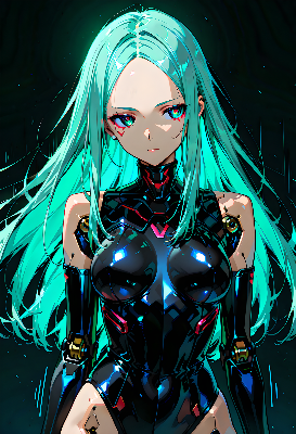 solo, 1girl, gyaru, long straight hair, aqua hair, forehead,