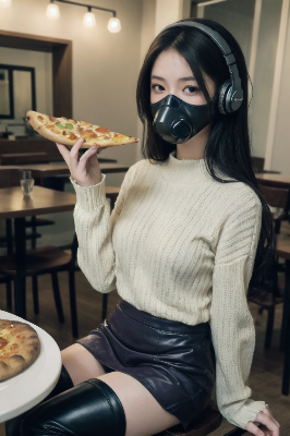 (photorealistic:1.4), (RAW photo), masterpiece, best quality, extremely detailed, lady, neat and clean, elegant, polite, (shy:0.9), black medium length hair, almond eyes, (smile:0.9), slim fit, hooded, high necked, closed zipper, (shiny mint blue short puffer down jacket, leather skirt, platform long rubber boots), sit on chair, iced coffee on table, (high angle shot:0.7), clean living room, cold
