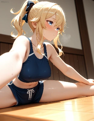 1girl,barbara_\(genshin_impact\),alternate_costume,virgin_killer_sweater,grey_sweater,sideboob,standing,hand_on_own_chest,arm_behind_back,looking_at_viewer,looking_down,embarrassed,blush,half-closed_eyes,indoors,rating:nsfw,from_below,from_side,foreshortening,dutch_angle,negative_space,masterpiece,best quality,amazing quality,very aesthetic,absurdres,newest,highres,detailed,very awa,HDR,8K,
