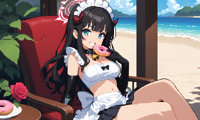 「すみません、今日もオバQさんメイクです。」 「謝る必要ないだろw」 「コルセットの方はレースアップとフロントジップと2種類用意してみました。印象がかなり違うと思います。」 「今日の衣装だが、ウチの制服は元々こっちの方が近いニャ。」 「そうでした。中の人さんのご趣味だとか…」 「www」 「『ハイネックでインテリジェンスとクラシックなエレガントさを演出しつつ、適度に肌を出すことで抜け感を…』とか何とかめんどくさいこと言ってたにゃ。細かいとこにこだわりがあるみたいで呪文がめんどいニャ。」 「面倒なあまり一度全部脱いで全裸でお店に出た、と伺いましたよ。」 「いや全裸じゃないぞ。誰だ盛ったの。」 「あ、またオマケで生成情報付きのサンプル載せたから、興味があったら見てニャっ
