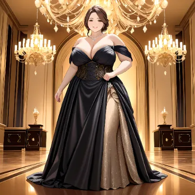 wearing a corset evening dress, corset accentuating slim waist and long frame,