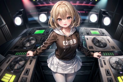 (best quarity:1.5, ultra high resolution, 8K, masterpiece), (shiny skin, extremely detailed, perfect anatomy, very aesthetic), (comic, speech bubble, frame, focus line, comic expression, sound effect), (chibi:1.3), (2+ girls), large breasts, large eyes:1.2, plump, (pink hair, bare forehead, show off forehead, wavy hair), (black bandeau bikini, opened yellow parka, black puffy bloomers, black and white striped thighhighs), (standing, open stance, hands on waist), (v shaped eyebrows, smile, open mouth, +++, blush, play room, indoor), dutch angle, (super fine illustration, photorealistic, depth of field:0.4), <lora:hairdetailer:0.8>