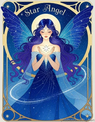 The Archangel of Mercy, Raphael, protector of healing and travelers, has soft brown hair adorned with natural twigs, is wearing green travel attire and carrying a bag of medicinal herbs, has beautiful jade-green wings, a gentle and caring, fatherly expression, and is walking as a traveler carrying a staff. The color scheme is a natural harmony of green, brown, and gold, and the image is taken from a friendly side angle, with a lush forest path and stream in the background, soft impressionist-style brushstrokes and natural light, and green light particles symbolizing vitality and healing.