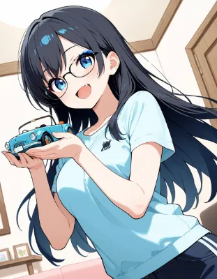 主「どうした、YUME? その格好は…?」 Y「応援に決まってるじゃないですか! ついでにヘッドホンも着けてますからお題もクリアできますし…」 主「応援って何の…?」 Y「マジック1で迎えた最終戦ですよ! 今日こそ優勝を決めてくれるはずです!」 主「チケットは取れないからテレビを見ながら応援か…?」 Y「今どきはVRで球場の臨場感を味わいながら観戦できるんですよ~♪ そろそろ試合開始ですからゴーグルも着けないと…」 主「(また、振り回されたバットに俺が殴られる… なんてオチじゃないだろうな…?) ( ̄д ̄)」 Y「いけ~! かっとばせ~」 (試合も終盤に…) Y「リードして最終回の守りですね~ このままリードを守って優勝です~ 最後のバッターは… イージーなフライですね…」 (そのとき信じられない出来事が!!) Y「え~っ!! 落下点に入ったショートの頭にフライが直撃!? そんなバカな!!」 (そのプレーがきっかけでYUMEが応援しているチームは敗戦…) Y「何てボーンヘッド… 本当にプロなんですか…? ( ̄△ ̄)」 Y「でも、YUMEはあきらめませんよ… 明日こそは優勝を決めてくれるはずです!」 主「(試合開始前に、最終戦って言ってなかったか…?) ( ̄д ̄)」 ショートフライが頭を直撃とか、マジック1の最終戦で敗戦とか、昭和のプロ野球で実際にあったネタを織り込んでみました…w 最初は応援用のメガホンを持たせようとしたのですが、どうしてもラストのような拡声器になってしまうので応援用のミニバットに変更しました