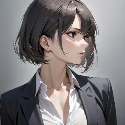 20歳の大学生モデル・渡辺葵ちゃん(黒髪ボブ、黒い瞳、スレンダー体系)が、メイクアップ撮影でアイシャドウを強調したクールで洗練された姿を見せています。撮影用のシンプルで上品な黒いキャミソールドレスをまとい、スタジオの柔らかなライティングに照らされ、瞳の奥に艶やかな黒とブルーのアイシャドウが際立ちます。視線はカメラの横に外していて、自然体でありながらも大人っぽさを感じさせる構図です。