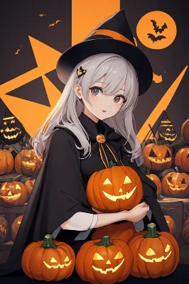 Please draw What You Like.8k, One Girl, ((Perfect Anatomy, Perfect Human Body, Best Quality, Masterpiece, Super Detailed, X Composition, S Composition, Square Composition, Triangle Formation, Award- winning works)), cute, orange and black palette, trick or treat, pumpkin carriage, big wizard hat, black cape, black dress, absurd, the fantastic world of halloween,, candy, fun,