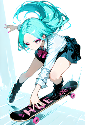 solo, 1girl, gyaru, closed one eye, long straight hair, aqua hair, forehead, school uniform, eyeshadow, cheeky gaze, looking down,
