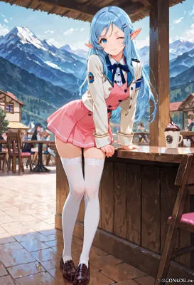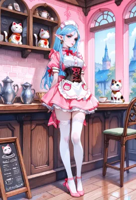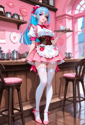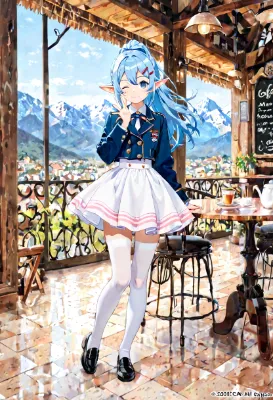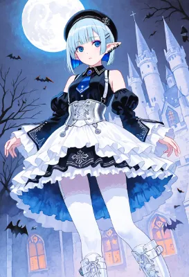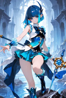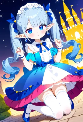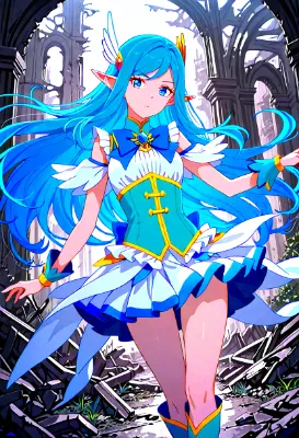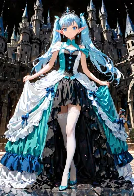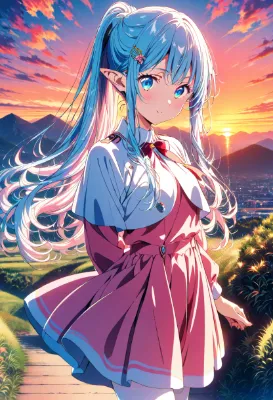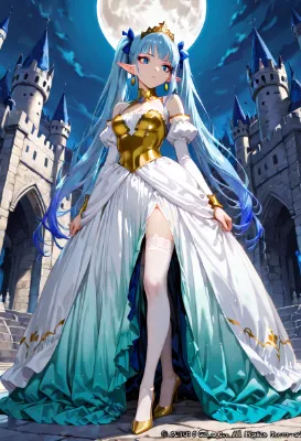 青いドレスをまとったエルフの姫が、城のバルコニーから広がる壮大な風景を眺める。遠くにそびえる古城は、彼女の故郷か、それとも未知の冒険の始まりか。風に髪をなびかせ、青い瞳に未来の物語を映す。彼女の心には、自由への渇望が芽生え始めている。果たして、この穏やかな瞬間が、壮大な旅の序章となるのか。読み手は彼女の運命を想像せずにはいられない。
