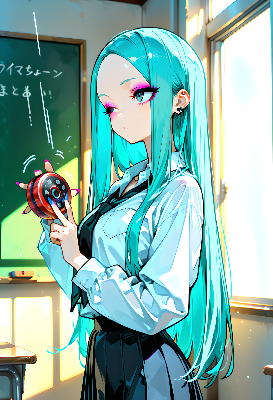 anime style, masterpiece, ultra high quality, ultra-detailed, high resolution, 4k, solo, 1girl, gyaru, long straight hair, aqua hair, forehead, school uniform, closed one eye, eyeshadow, cheeky gaze, looking ahead, movement motion lines:1.2, sense of depth, dutch angles, convenient angles:1.2, riding boat, sea, wave, splash, outdoors