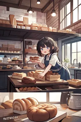 小さな田舎町のパン屋で働く少女は、毎朝のオーブンから黄金に輝くパンを取り出す瞬間が大好き。香ばしい匂いが部屋を満たし、彼女の頰を優しく温める。今日もこのパンたちが、町の人々に小さな幸せを届ける冒険の始まり。少女の閉じた目には、甘い夢のような物語が広がっているのかもしれない。