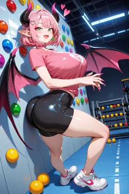 BREAK (white short sleeve t-shirt:1.4), (black compression shorts:1.4), pink choker, white sneakers,