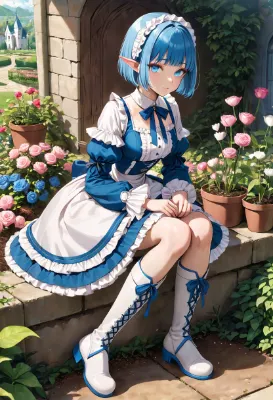 壮大な城の庭園で、青い髪の姫君が優雅に舞う。彼女は王冠を輝かせ、風に髪をなびかせながら、秘密の冒険を胸に秘めている。花々が咲き乱れる中、遠くにいる友人たちと出会う瞬間を待つ。日常の喧騒を離れ、夢のような世界で繰り広げられる物語。姫君の瞳には、未知の魔法が宿り、訪れる者を魅了する。あなたもこの庭園で、彼女の冒険に参加してみては?