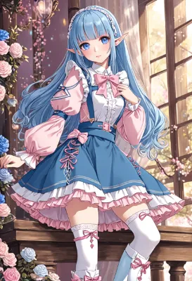 青い髪のエルフ少女が、ピンクのプールサイドに座り、競泳水着に身を包んで一息つく。彼女は森の守護者として忙しい日々を送るが、今日だけは水辺の冒険を楽しむ。ゴーグル越しに輝く瞳が、未知の水中世界への好奇心を語る。滴る水滴が肌を滑り、夏の陽光が彼女の背中を優しく照らす。この瞬間、日常の喧騒から離れ、静かな物語が始まる。あなたも一緒に潜ってみたくなるかも?