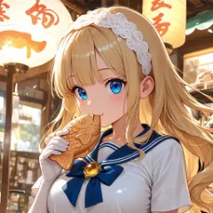 放課後の帰り道。秋風に乗って、甘く香ばしい匂いが漂ってきた。 「わあ、たい焼きだ!」「放課後のおやつに最高だよね!」 クラスの女子たちが目を輝かせながら、屋台に群がる。 その光景を少し離れた場所から見ていた美月は、扇子で口元を隠し、すっと鼻を鳴らした。 「お魚の形をした菓子を手掴みで……なんと無作法な。レディに魚を食べさせる時は、銀のナイフとフォークが必須ですのに」 周囲の友人たちは「また始まった」と苦笑するが、屋台から立ちのぼる湯気と甘い香りは、確かに人の心を揺さぶる。 焼き上がるたびにパリリと小気味よい音を立てる生地。その中に包まれているのは、黒々と艶めく餡子。 思わず、美月お嬢様の喉が小さく動いた。 「……ふん。あくまで皆さまの好奇心にお付き合いするだけですわ」 そう言って、財布から小銭を取り出す仕草もどこかぎこちない。 渡されたたい焼きは手のひらにずっしりと温かく、表面は金色に輝き、香り立つ甘味が鼻先をくすぐった。 「な、なによ、この……あつっ!」 慌てて一口かじった瞬間、外の皮がぱりっと割れ、中から熱々の餡子があふれ出す。 「……っ! こ、これは……! 舌の上を流れる紅蓮の溶岩! 甘さと熱さが渦を巻き、まるで火山の噴火を閉じ込めたかのよう!」 表面の皮は香ばしく、薄い鎧のように中身を守りながら、絶妙な歯ざわりを奏でる。 「外側は黄金の鎧、中は甘き炎……! このお菓子、ただの魚の形をした庶民食などではなく――お魚の姿を借りた聖獣ですわ!」 周囲で友人たちが笑いをこらえる中、お嬢様は夢中でたい焼きを食べ進めていく。 気づけば、残されたのは小さな尻尾の先だけ。 「魚の形をした菓子……まあ、庶民の遊び心にしては悪くありませんわね」 あくまで涼しい顔を取り繕いながらも、最後にはたい焼きの尻尾の先までしっかりと完食したのだった。