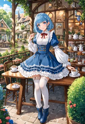 古い茶館の軒先で、ピンクとブルーの髪をなびかせた少女が座っている。彼女は街の秘密を知る鍵を握る存在なのか?盆栽の緑が揺れる中、訪れる客に謎めいた微笑みを浮かべる。日常の喧騒から逃れ、彼女の物語に引き込まれる瞬間。どんな冒険がこの茶館で待っているのだろうか?