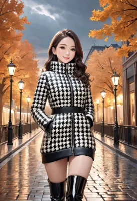 (photorealistic:1.4), (RAW photo), masterpiece, best quality, extremely detailed, lady, (scientist, doctor, nurse), neat and clean, elegant, polite, (shy:0.8), black long hair, almond eyes, (smile:0.9), slim fit, full sleeves, high necked, closed zipper, (enamel, rubber, latex, (shiny purplish white bodysuit, shiny purplish black short puffer down jacket), long gloves, high heeled long boots), mysterious laboratory, mechanical factory, sit on chair, watching the monitor, (high angle shot:0.7), (giant 3D printer:1.3), cool and cold