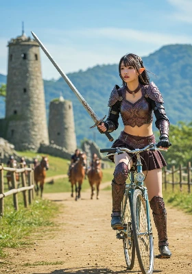 冒険者養成学校の教室は、放課後のざわめきに満ちていた。誰もが仲間たちと今日の訓練の反省や、街の新しい店の噂話に花を咲かせている。そんな喧騒からポツンと一つ、取り残された席があった。 そこに座るエルフの少女、チークリアは、腰まで伸びる白銀の髪を揺らし、透き通るような白い両頬には、赤い絵の具で描かれた奇妙な渦巻き模様が鎮座している。 そして近くで荷物をまとめていた人間のクラスメイトに、話しかけた。 「私、バカボン意識してるんだよね」 チークリアは自信満々に頬を指さした。クラスメイトの少年は、眉をひそめて怪訝な顔をする。 「え?……ああ、『これでいいのだ』とか言う人?」 「それはバカボンのパパ」 チークリアは人差し指を立てて、したり顔で訂正した。 「パパの方は『賛成の反対なのだ』等の名言もあるけど、バカボン息子の方はさしたる名言も無いのよ。だからこそ、私がその魂を受け継ぎ、新たな伝説を作るのだ」 「ふーん……て言うか、意味分かんないからもう行って良い?」 「ああ、引きとめて済まんな」 少年は逃げるように教室を出ていった。また一人、友達候補が去っていく。チークリアは小さくため息をつき、机に突っ伏した。エルフの尖った耳が、しょんぼりと垂れる。 「どうして誰も分かってくれないんだ……」 暗闇が世界を支配し、天空には砕け散った宝石のような無数の星が瞬いています。 分厚い雲の海が、まるで巨大な白鯨の背中のようにゆっくりと流れ、その切れ間から覗く月光は、地上に眠る全ての生命に銀色の祝福を投げかけているかのようです。 冒険者養成学校の窓辺に一人佇み、頬に描かれた渦巻きを夜空の月に映すエルフの少女、チークリア。彼女が追い求める「友達」という名の蜃気楼は、果たしてこの世界のどこで彼女を待っているのでしょうか。 隣の部屋から聞こえてくる、相棒であるドワーフの盛大ないびきだけが、彼女の孤独な夜に寄り添う唯一の子守唄。 理解されぬ二つの魂が奏でる不協和音の冒険譚は、まだ始まったばかり。夜の帳は、そんな二人を優しく、そして静かに包み込んでいくのでした。