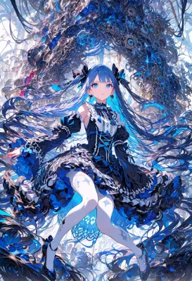 森の隠れ家のような小さなティールームで、青い髪のエルフ少女が小さな妖精たちと甘いお茶会を楽しむ。棚に並ぶ不思議なティーポットから香る魔法の紅茶と、ふわふわのケーキがテーブルを彩る。少女は優しい笑顔で仲間たちに冒険の話を聞かせ、穏やかな午後のひと時を過ごす。もしかすると、このお茶会が新たなファンタジーの始まりになるかも?