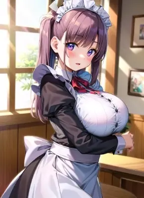 (elegant:1.8),(a cute mini maid girl greeting:1.5),(tsurime:1.8),(baby face:1.8),light smile,(silky hair:1.3),(looking at viewer:1.5),(big breasts:1.8),(shiny white skin:1.2),(pale colored:1.2),(from below:1.0),(closeup to viewer:1.3),solo,(blush:1.6),panty,