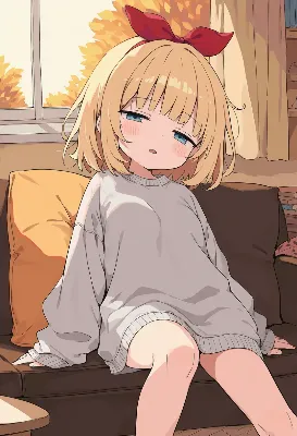 2girls,(hair bow:1.4),red bow,blonde girl with (blue eyes:1.2),short hair,bob hair,black hair girl with short hair,brown eyes,small girls,loli,excited expression,cheerful smile,flat chest,(autumn casual clothing:1.2),cozy sweater,long pants,comfortable outfit,kneeling pose,leaning forward,hands cupped around mouth,speaking gesture,full body,(retro robot:1.3),old sci-fi robot design,metallic body,boxy shape,speaker on chest,mechanical arms and legs,vintage appearance,indoor room background,living room,wooden floor,warm lighting,cozy atmosphere,afternoon sunlight through window,detailed fabric texture,anime style,(masterpiece:1.4),(best quality:1.3),(very aesthetic:1.2),(absurdres:1.1),