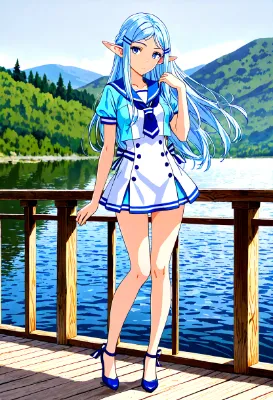 ピンクとブルーのツートンヘアが風に揺れる少女は、古い路地を歩きながらどら焼きを頰張る。手に持った紙袋からは甘い香りが漂い、彼女の日常に小さな冒険を加える。黒いドレスが影を落とす中、陽光が差し込み、次なる発見を予感させる。もしかすると、この路地は秘密の扉へと続く道なのか? 彼女の瞳に映るのは、街の隠れた物語。