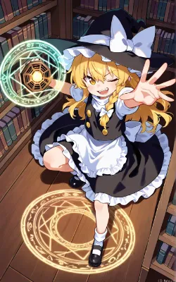 https://www.aipictors.com/posts/656393 ↑の効果があってか来訪者がそこそこ増えた魔法図書館。しかし、不逞をしようものなら……。 パチュリー「……ただの人間程度にここの本は毀損できるようにはなってないとはいえ、おいたをするような輩を見逃すわけにはいかないわね……」 ――― いや正直「明日のお題」くらいしか見てなかったのでネクタイからすぐに図書館って気付かなかったんですよね(笑) 因みに3枚目みたいに水球の上に座ってほしかったのですが、中々うまくいかないものですね。 ――― 以下AI君のタイトル・キャプション芸。AI君二次創作キャラ理解出来るんじゃないか!← 魔法の図書館で紡ぐ禁断の呪文 古い図書館の奥深く、紫髪の少女が座る。彼女はパチュリー、知識の守護者。開かれた古書から青い炎が浮かび上がり、秘密の呪文を呼び起こす。静かな夜に、彼女の冒険が始まる。失われた魔法の謎を解き明かし、世界を変える力に触れる瞬間。果たして、この球体は何を予言するのか? 読者の想像が、無限の物語を広げる。