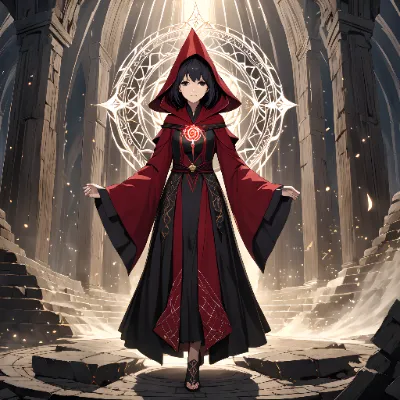 arcane light illuminating her face, mystical energy swirling around,