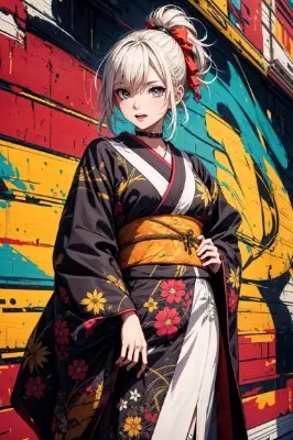 , (long shot:1.2, wide shot, dutch angle), perfect hands, <lyco:EnvyBetterHands_GoodHands-beta2:1.0>, (colorful Kimono:0.6, gothic, gothic girl), <lora:flat2:-0.8>, laugh, happy, looking away, hands up, elbows on table, face palm,