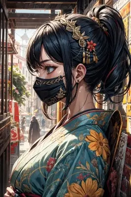 , (1girl:1.3), adult, 25 years old, <lora:BreakRealize_rL2170:0.2>, <lora:flat2:-0.8>, Confidence, (colorful cloths:1.5, kimono), from above, arm up