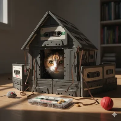 古びたレコード店で、猫の店長がアンプの上に座り、積み重なるカセットテープを眺めている。日が沈むと、彼は秘密のメロディーを奏で、訪れる客を魅了する。棚に並ぶ古いレコードは、忘れられた物語を語り、猫の瞳には音楽の冒険が映る。あなたもこの店で、失われた旋律を探してみては?