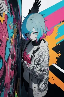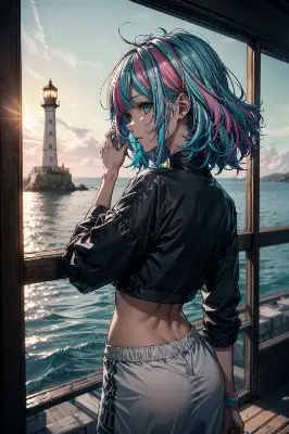 , (streaked hair:1.2, colored inner hair:1.2, pastel neon colors hair:1.4, middle hair), (1girl:1.3), adult, 25 years old, <lora:add_detail:1>, (colorful cloths:1.5, cyberpunk, sense of movement), from side, hand on own thigh