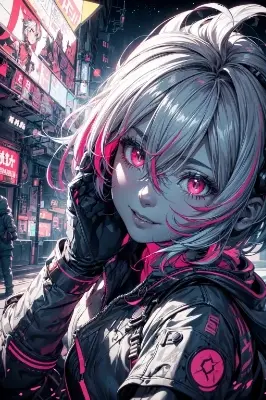 , happy, black ink, stylish pose, (colorful:1.5, vivid:1.5)