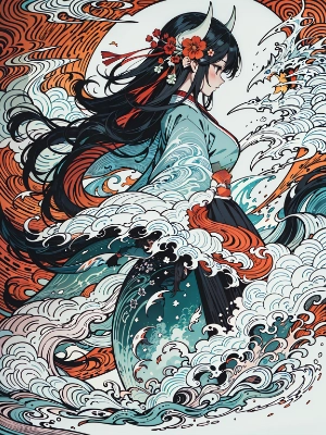 , Create an artwork in the style of stained glass, with vibrant colors, intricate patterns, and a sense of light and transparency., Design a moon goddess, with lunar-inspired attire, the power to control the tides, and a connection to the night sky.