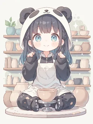 ろくろを回して粘土の形を整える陶芸パンダきぐるみ娘を作ってみました。
