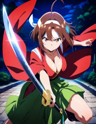 1girl, solo, 15yo, small breasts, cyborg, police, metal body, cleavage, metal arms, skirt, metal legs, beautiful detailed face and eyes, serious, blond hair, long hair, shiny hair, two side up, hair intakes, hair between eyes, (goggles on head:1.2), headset, purple eye, open mouth, holding megaphone, standing on patrol car, city, night, (sf:1.3), anime artwork, anime style, key visual, vibrant, studio anime, masterpiece, high score, great score, absurdres, masterpiece, high score, great score, absurdres