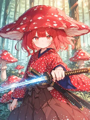 巨大キノコの森を守るキノコ頭の女侍を作ってみました。