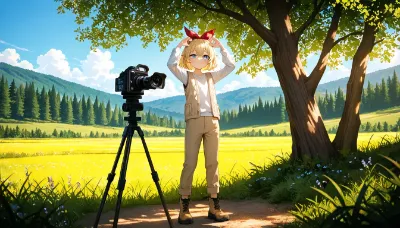 1girl,solo,(hair bow:1.4),(red bow:1.4),blonde hair,short hair,bob hair,blue eyes,small girl,child,cute face,cheerful expression,gentle smile,bright eyes,flat chest,autumn clothing,beige cardigan,white shirt,brown skirt,knee-high socks,brown shoes,(walking:1.2),toddling,cute walk,arms swinging,holding sketchbook,(sketchbook:1.3),brown sketchbook,clutching book,one hand holding book,relaxed posture,legs in motion,one foot forward,(autumn park:1.3),(fall foliage:1.4),(red leaves:1.2),(yellow leaves:1.2),(orange leaves:1.2),colorful trees,maple trees,ginkgo trees,fallen leaves on ground,(leaf carpet:1.1),park path,walking path,park bench,autumn scenery,(beautiful autumn colors:1.3),gentle breeze,leaves floating,peaceful atmosphere,warm autumn light,soft sunlight,golden hour,clear sky,an extremely delicate and beautiful,beautiful detailed autumn scenery,beautiful detailed eyes,beautiful detailed leaves,(masterpiece:1.3),(best quality:1.3),(very aesthetic:1.2),(absurdres:1.2),