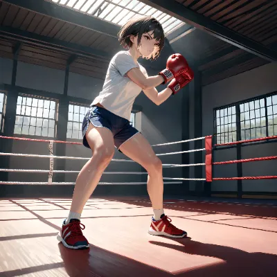 composition: medium full shot, gentle perspective, golden light through trees