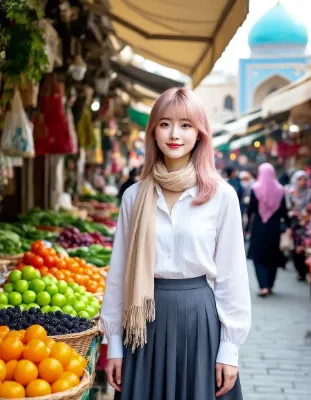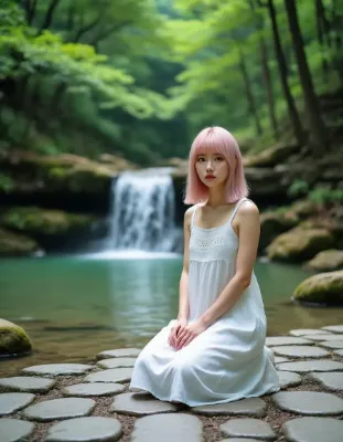 この作品では、都会的な洗練と自然の柔らかさを融合させることを意識しました。モデルのグレーのジャケットとスカートは、背景のベージュの建物や緑の並木と調和し、落ち着きと品格を感じさせます。髪色の淡いピンクは、全体のトーンに優しいアクセントを加え、彼女の存在感を際立たせます。ポージングは自然体を重視し、脚を軽く交差させた立ち姿とリラックスした腕の配置が、親しみやすさと静かな自信を表現しています。光と影のバランスにもこだわり、木漏れ日が地面に描く模様が、時間の流れと季節感をさりげなく伝えています。 In this work, I was conscious of fusing urban sophistication with the softness of nature. The model's gray jacket and skirt harmonize with the beige buildings and green tree-lined streets in the background, evoking a sense of calm and dignity. The pale pink of her hair adds a gentle accent to the overall tone, highlighting her presence. The pose emphasizes a natural pose, with her legs lightly crossed and her arms relaxed, conveying a sense of approachability and quiet confidence. I also paid particular attention to the balance of light and shadow, and the patterns that the sunlight filtering through the trees creates on the ground subtly convey the passage of time and a sense of the seasons.
